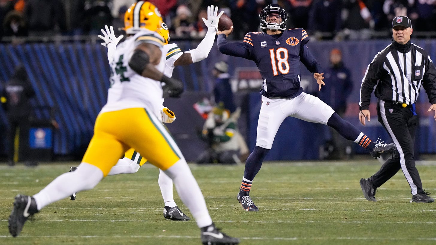 The Dolphins are a strange case to me: why in the world would they break out their best uniform in their entire set - their Dan Marino-era uniforms - when they’re already eliminated and the team feels defeated? Miami seemed to have given up, and turning to Quinn Ewers really cemented that fact.